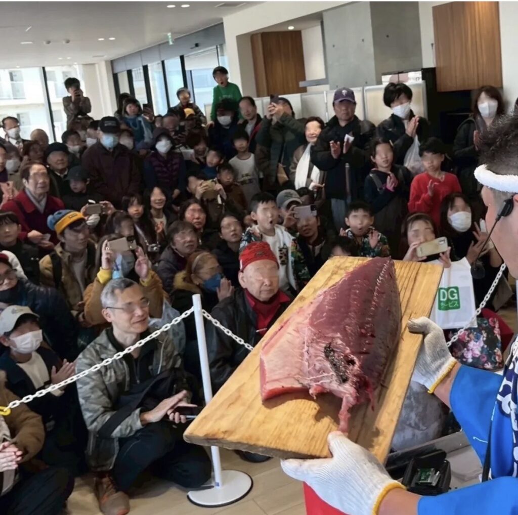 マグロを担いで回遊後、解体ショーは、毎度のごとく大盛り上がり!!