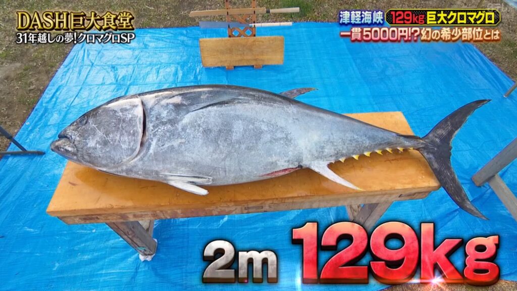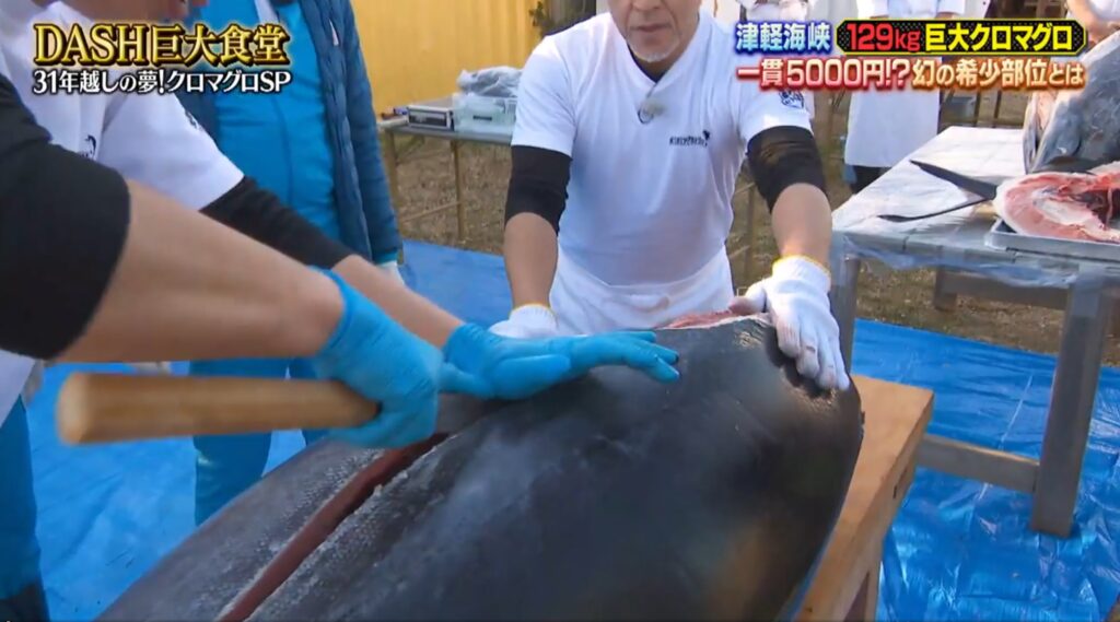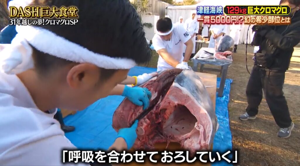 兎にも角にも、長さ2メートル・重さ129kgのマグロの豪快な身卸し・調理は、迫力満点!!